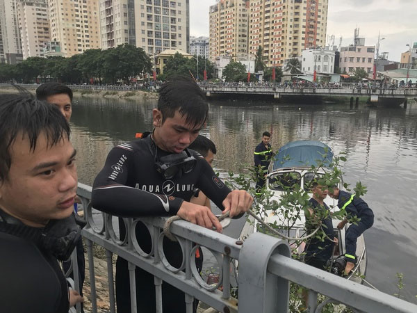 Cảnh sát PCCC đã huy động hơn 10 người nhái tới hiện trường để tìm kiếm.