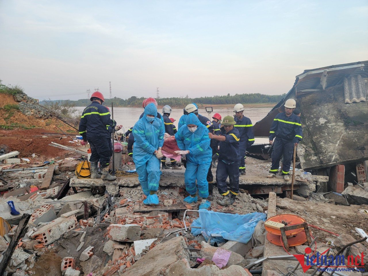 Thượng tá Hoàng cho biết, thi thể ông Lợi được tìm thấy dưới lớp tường đổ nát của căn nhà bị sập sau hơn 7 giờ.