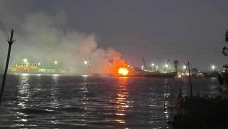 Đang kiểm tra, phía bên trong tàu bỗng phát ra tiếng nổ rồi cháy dữ dội. Vụ việc đã được báo lên lực lượng chức năng.