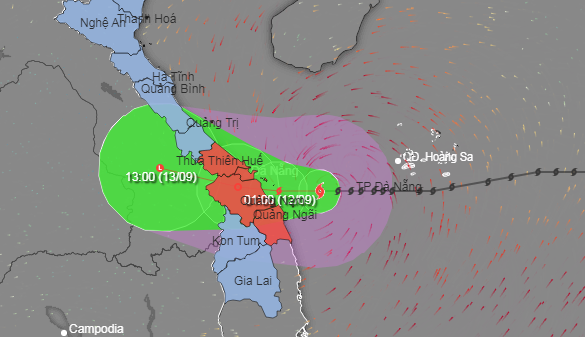 Từ hôm nay đến ngày mai (12-9) vùng ven biển khu vực từ Quảng Trị đến Quảng Ngãi (bao gồm đảo Lý Sơn, Cồn Cỏ, Cù Lao Chàm) gió mạnh cấp 8-9, giật cấp 11. Trên đất liền tại các tỉnh thành Quảng Trị, Thừa Thiên Huế, Đà Nẵng, Quảng Nam gió mạnh cấp 7, vùng ven biển cấp 8, giật cấp 10. Sóng biển lên cao 3-5m.