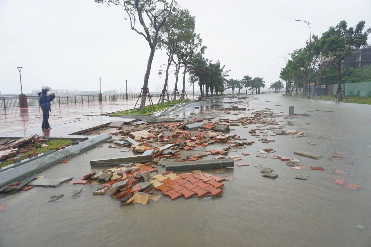 Ở Đà Nẵng, sóng cao từ 2-3m đã đánh hư hỏng nhiều đoạn vỉa hè tại đường Như Nguyệt (Q.Hải Châu). Khu vực vỉa hè ven sông Hàn nhiều thiết bị hư hỏng, gạch lát vỉa hè bị sóng đánh trôi khắp lòng đường, một số đoạn còn đọng nước khiến phương tiện di chuyển khó khăn.