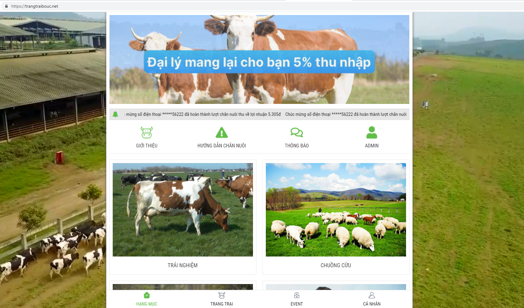 Theo đó, ứng dụng có tên “trang trại tiết kiệm” (hay còn gọi là “nuôi bò online”) đã lừa đảo hàng ngàn người trên cả nước "đầu tư" lấy lãi. Nhưng sau một thời gian đầu tư thì ứng dụng bất ngờ bị sập, khiến hàng ngàn người mất trắng toàn bộ tiền "nuôi gia súc" trên ứng dụng.