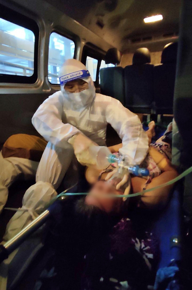 Nhận được thông tin từ người nhà bệnh nhân ngay lập tức đội ngũ y, bác sĩ TYT phường Tân Kiểng tới nhà thăm khám, lúc này bệnh nhân có dấu hiệu suy hô hấp, SpO2 66%.