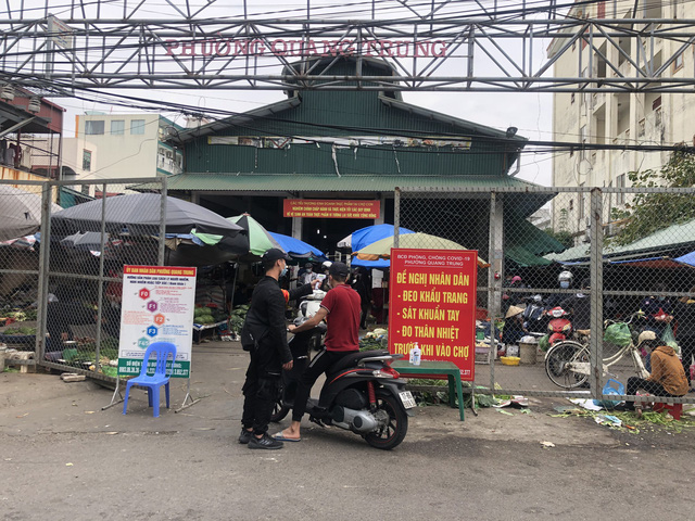 Tại cổng vào các chợ dân sinh, chính quyền địa phương đã bố trí lực lượng đo thân nhiệt, sát khuẩn tay cho người đến mua hàng. Trong chợ, các quầy bán thực phẩm được yêu cầu ngồi giãn cách để bảo đảm phòng chống dịch. Cả người mua và người bán đều đeo khẩu trang.