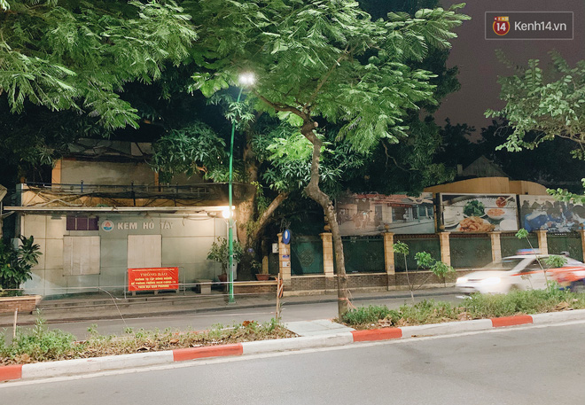 Tương tự như kem Tràng Tiền chính là hàng kem Hồ Tây nằm ở đầu đường Thanh Niên. Không chỉ tạm đóng cửa, ở đây còn đặt thêm biển báo nhắc nhở mọi người tránh tụ tập để phòng chống dịch bệnh tốt hơn.