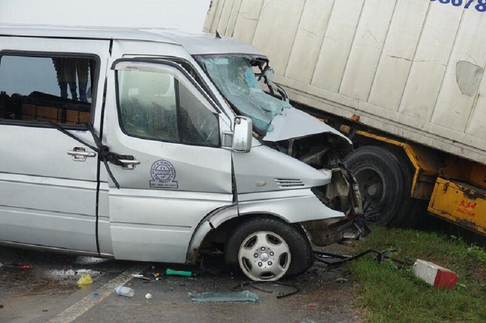 Khi đến xã Đức Phong, huyện Mộ Đức, xe ô tô trên va chạm với ô tô container BKS 51D - 151.45 kéo theo rơ móoc 51R - 098.10 do tài xế Lê Danh Lưu, 33 tuổi, trú xã Vũ Ban, huyện Bình Lục, tỉnh Hà Nam điều khiển chở hàng vật tư y tế từ Hà Nội về TP.Hồ Chí Minh.