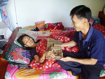 | Căn nhà mơ ước được Chín làm bằng tre để tặng Phương vào năm 2006 khi Phương đang chống chọi với bệnh u tủy. |