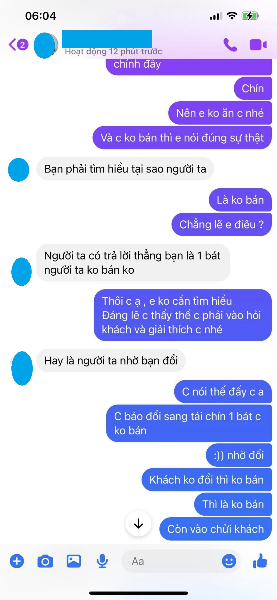 Chị L. không đồng ý đổi và quán cũng chỉ làm 3 bát phở tái chín.