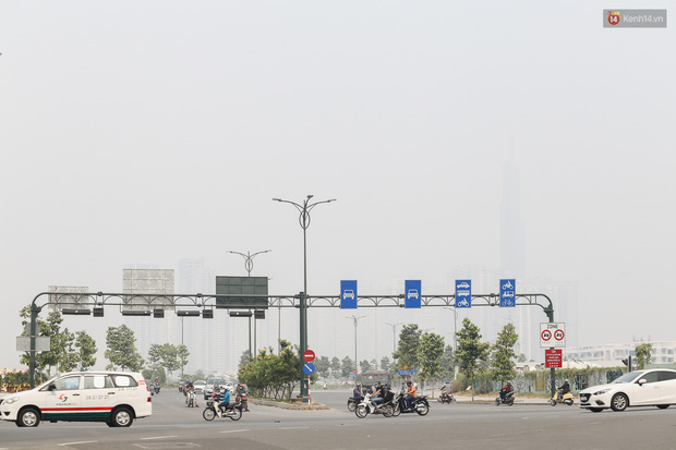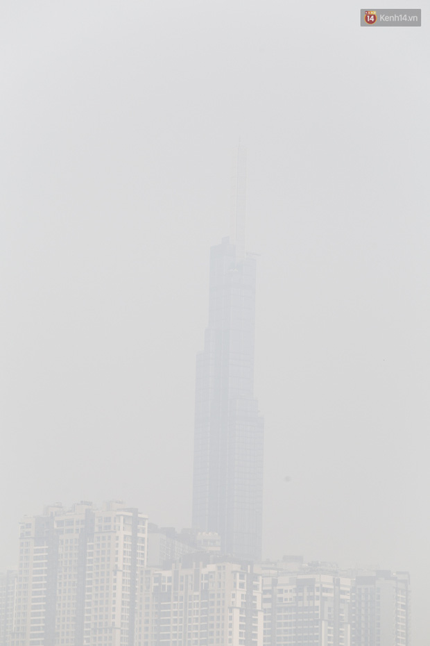 Còn tại khu vực toà nhà cao nhất Việt Nam – Landmark 81 cũng bị chìm trong mù ô nhiễm nặng. Đỉnh của toà nhà này gần như "biến mất" trong bụi mù, nhìn từ đường Mai Chí Thọ (quận 2) thấy không rõ.