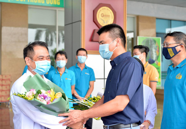 Bác sĩ Thân Mạnh Hùng, trưởng đoàn bác sĩ chuyến bay đưa công dân từ Ghine Xích đạo về nước bắt tay tổ bay, nhân viên kỹ thuật, những người đã cùng đồng hành trên chuyến bay đặc biệt.