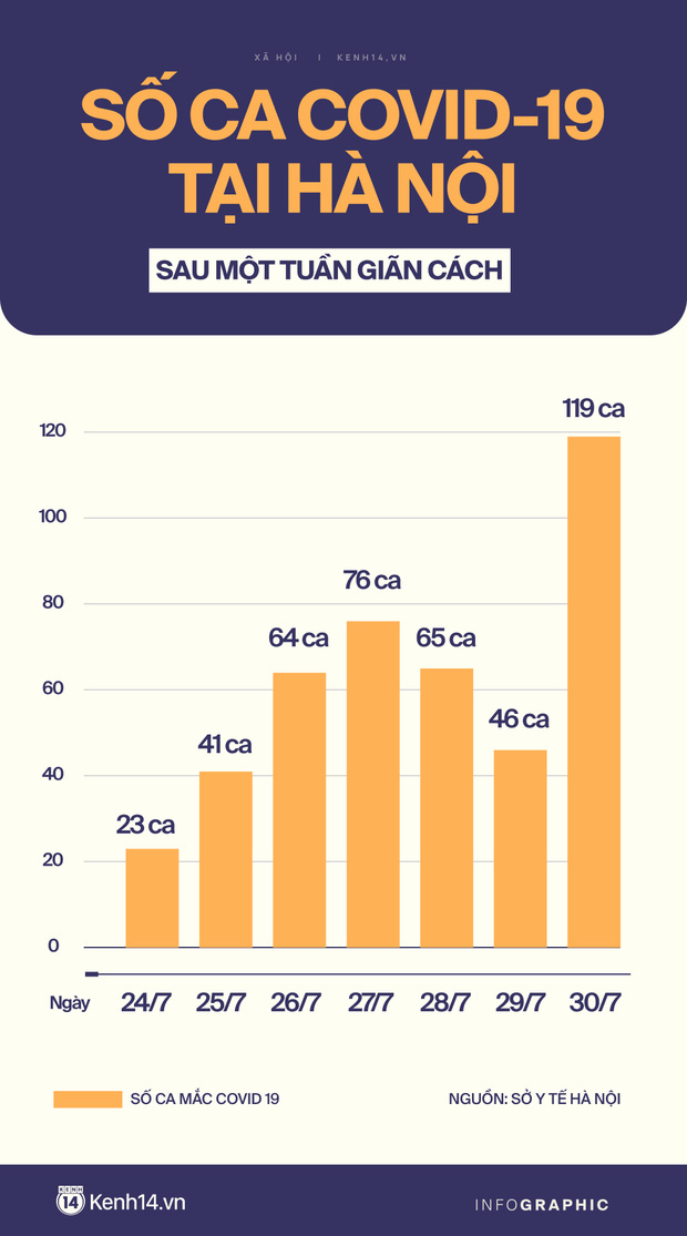 Tuy nhiên, ngày 30/7 tăng vọt lên đỉnh điểm 119 trường hợp, dịch diễn biến xấu tại nhiều quận, huyện. Các chùm ca bệnh chưa qua 14 ngày liên tục ghi nhận rải rác các ca mắc mới, đặc biệt những trường hợp qua sàng lọc ho sốt ngoài cộng đồng, chưa rõ yếu tố dịch tễ.
