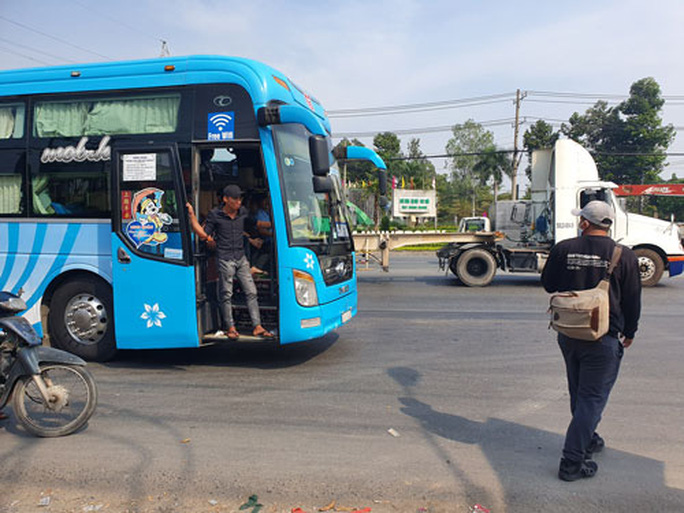 Một xe chạy tuyến TP HCM - Phan Rang vô tư dừng bắt khách trước cổng Trường Ðại học Nông Lâm TP HCM (TP Thủ Đức) Ảnh: TRẦN THÁI