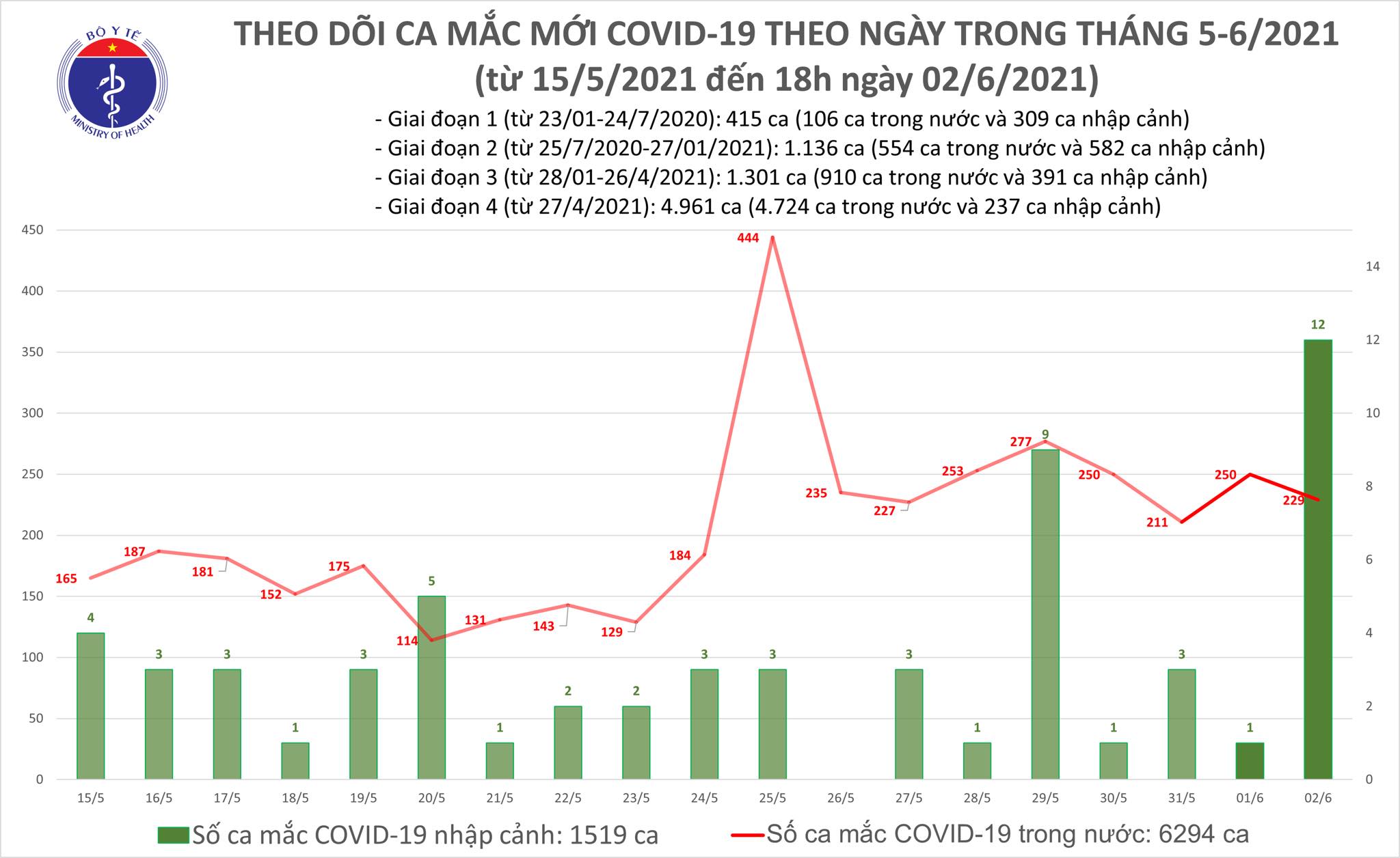 - Trong ngày 02/6, Việt Nam ghi nhận thêm 241 ca mắc mới: