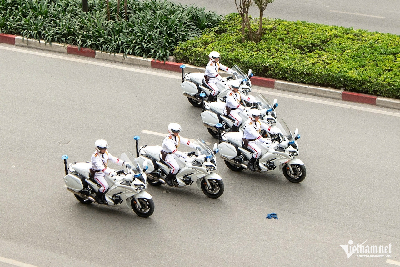 Hai nhà lãnh đạo cùng duyệt đội danh dự Quân đội nhân dân Việt Nam. Các chiến sĩ đội danh dự đồng thanh hô vang: "Chúc Tổng Bí thư, Chủ tịch nước khỏe!".