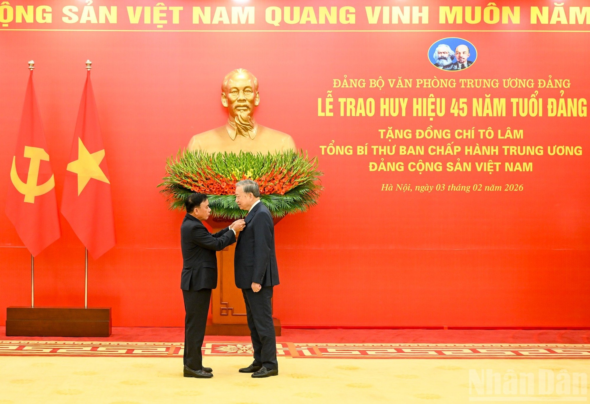 Tổng Bí thư Tô Lâm nhận huy hiệu 45 năm tuổi Đảng -