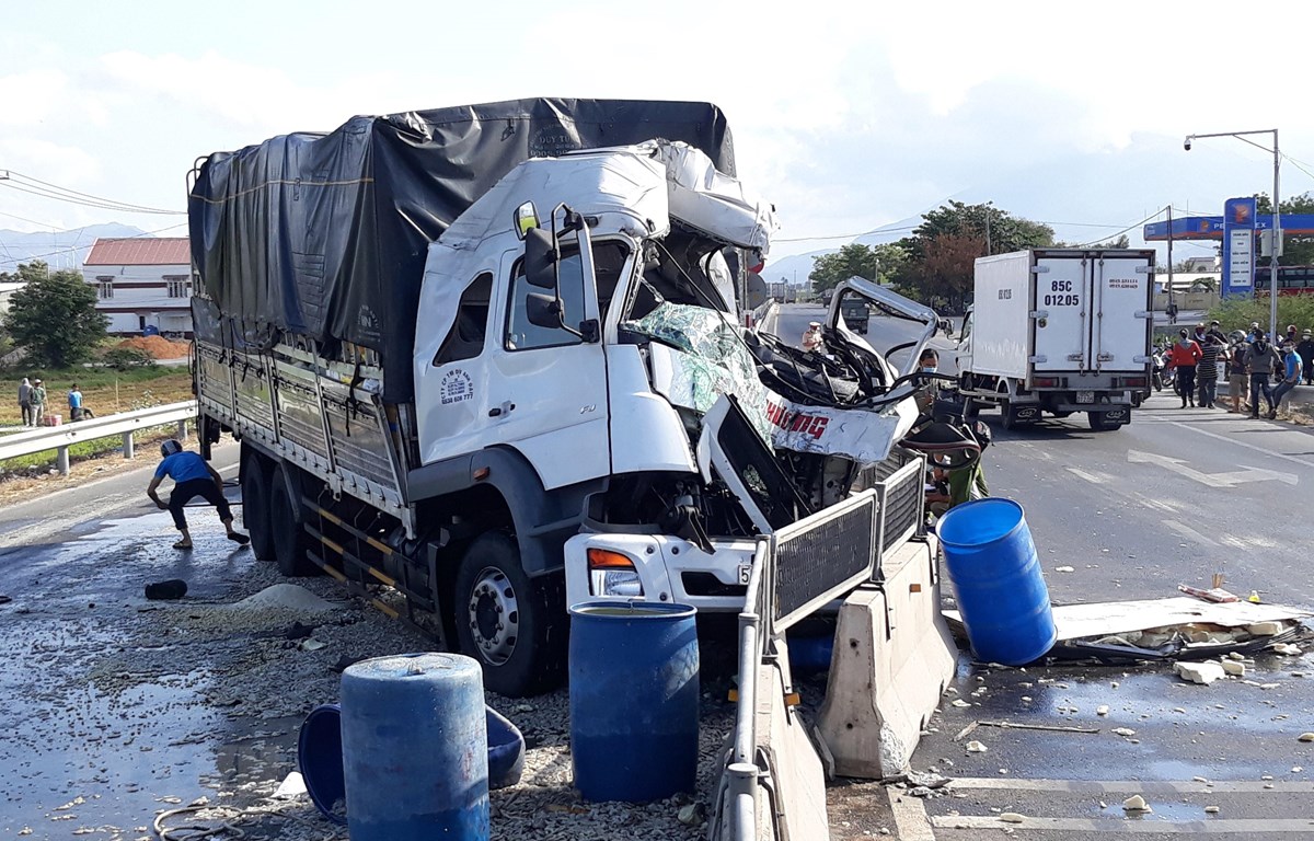 Thời điểm trên, xe ôtô tải mang biển kiểm soát 51D.60268 do tài xế tên Phụng (chưa rõ họ, trú tại huyện Mộ Đức, tỉnh Quảng Ngãi) cùng hai phụ xe chở hàng hóa lưu thông theo hướng Bắc - Nam. Khi đến Km 1545 +500 (địa phận xã Tân Hải) thì bất ngờ tông mạnh vào đuôi xe tải mang biển kiểm soát 79C-09899 chở tôm đông lạnh đang chạy cùng chiều do tài xế tên Dũng điều khiển.