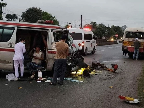 27/03/2023 20:42Tông vào ô tô buýt khi chở thi thể về quê, xe cứu thương biến dạng
