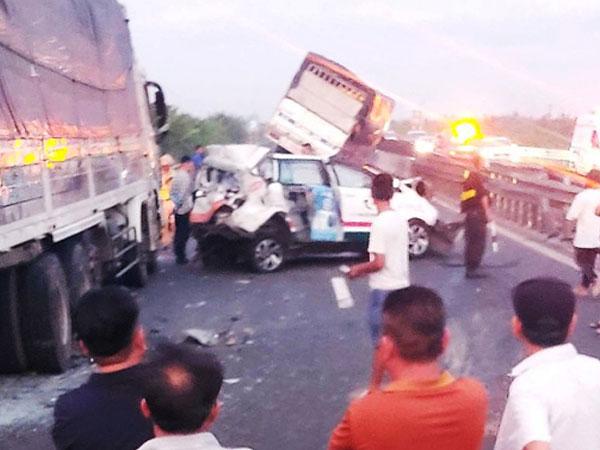 Tại hiện trường, taxi dúm dó, biến dạng, hành khách Trung Quốc trên xe tử vong tại chỗ, tài xế bị thương nặng. Còn xe tải bị nghiêng, khoảng 20 m dải phân cách cùng một số tấm chống chói, trụ hộ lan của cao tốc hư hỏng.