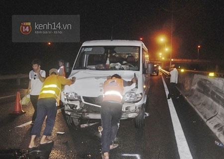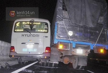 Tại hiện trường, xe khách 29 chỗ bị xe tải ép chặt vào dải phân cách bị biến dạng, lốp xe tải bị nổ văng xa gần 10m. Xe ô tô 7 chỗ và xe khách 16 chỗ cũng bị hư hỏng. Sau 10 phút, lực lượng cảnh sát giao thông, đơn vị quản lý cao tốc có mặt đưa các nạn nhân đi cấp cứu kịp thời, có hơn 10 hành khách phải nhập viện, trong đó có 2 người bị thương rất nặng.