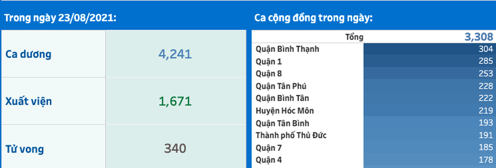 Theo Hệ thống Quốc gia quản lý ca bệnh Covid-19, tính từ 18h ngày 22/8 đến 18h30 ngày 23/8, ghi nhận 10.280 ca nhiễm mới, trong đó 14 ca nhập cảnh và 10.266 ca ghi nhận trong nước. TP. HCM có số ca mắc cao nhất là 4.251 ca.
