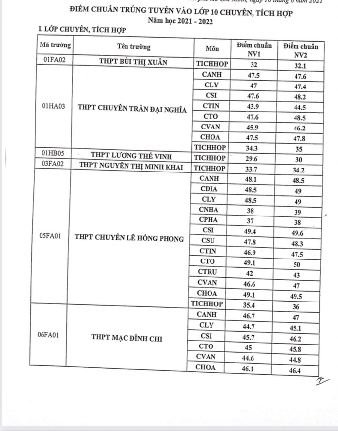 10/08/2021 16:43TP HCM: Công bố điểm chuẩn lớp 10 chuyên, lớp 10 tích hợp