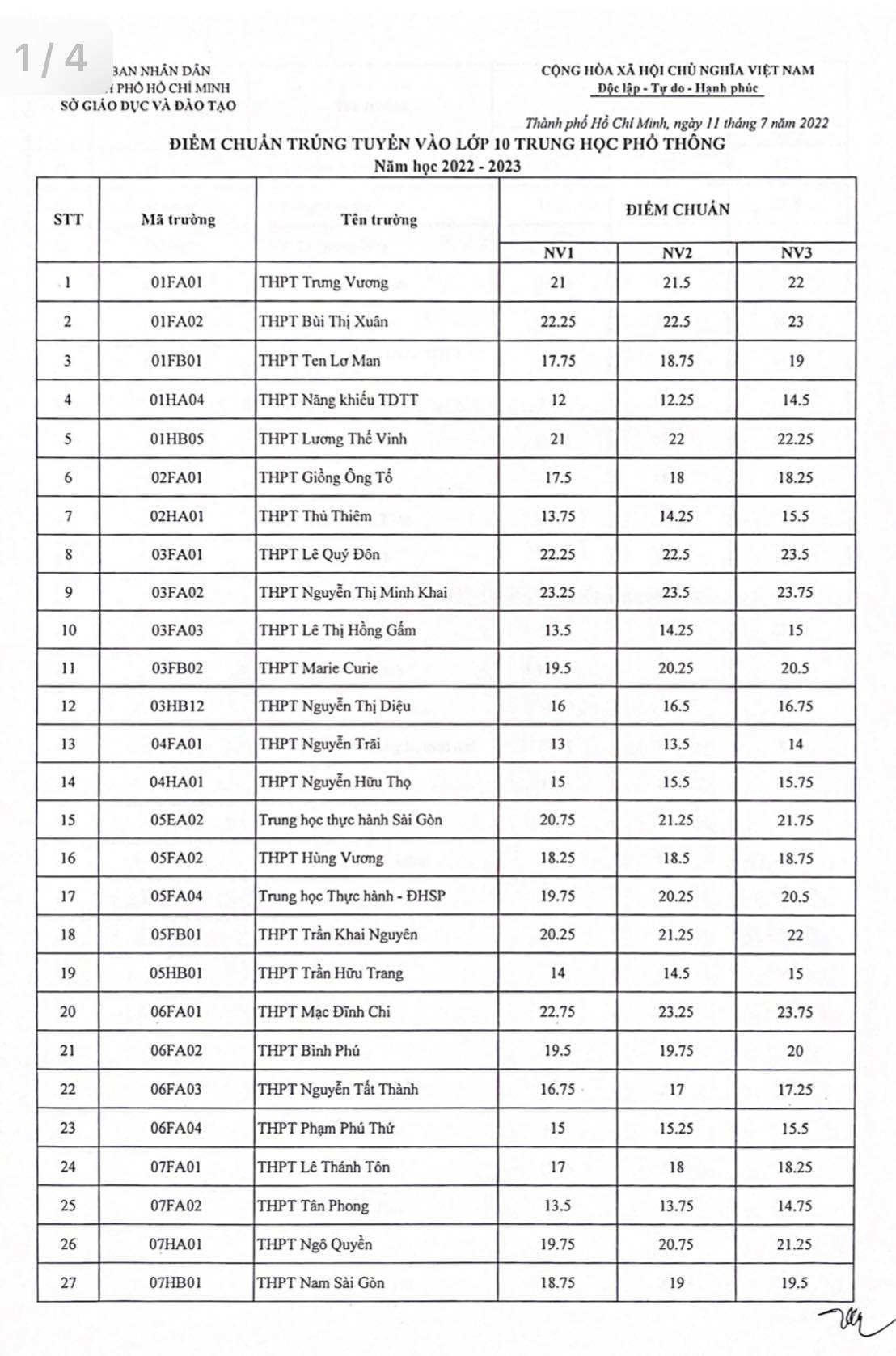 11/07/2022 15:45TP HCM công bố điểm chuẩn lớp 10 công lập