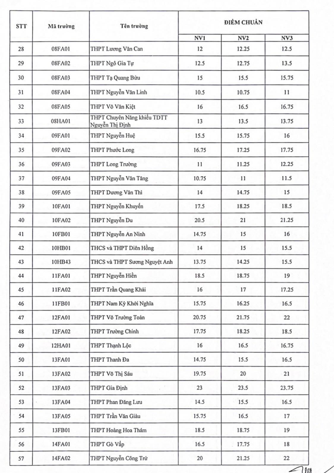 Căn cứ vào chỉ tiêu tuyển sinh từng trường, số lượng đăng ký các nguyện vọng và điểm xét tuyển, Sở GD-ĐT sẽ xét duyệt và công bố điểm chuẩn của từng trường theo nguyên tắc điểm chuẩn nguyện vọng 2 cao hơn điểm chuẩn nguyện vọng 1 và điểm chuẩn nguyện vọng 3 cao hơn điểm chuẩn nguyện vọng 2. Việc trúng tuyển của học sinh sẽ căn cứ vào 3 nguyện vọng mà học sinh đã đăng kí theo thứ tự ưu tiên từ nguyện vọng 1 đến nguyện vọng 2 và cuối cùng là nguyện vọng 3. Các trường chỉ được nhận các học sinh trúng tuyển lớp 10 theo đúng danh sách mà Sở GD-ĐT đã xét duyệt.
