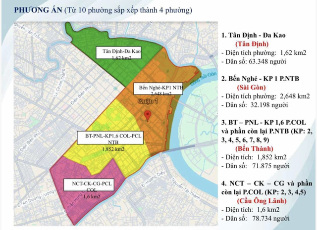 Quận 1 là địa bàn trung tâm của TP HCM. Từ 10 phường hiện nay, quận 1 đề xuất sắp xếp thành 4 phường.