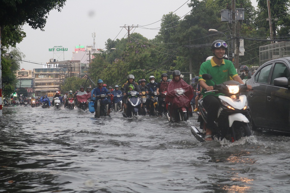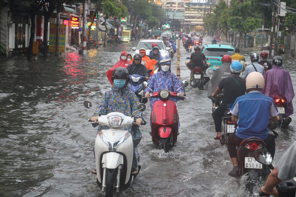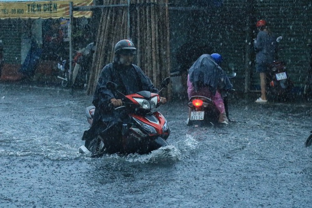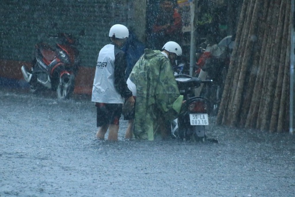 Khoảng từ 3 giờ chiều cùng ngày, nhiều nơi tại TP HCM đã xuất hiện mưa lớn và kéo dài như quận 1, quận 3, quận Tân Bình, quận Gò Vấp.... Mưa kéo dài cũng khiến nhiều tuyến đường ngập sâu trong nước.