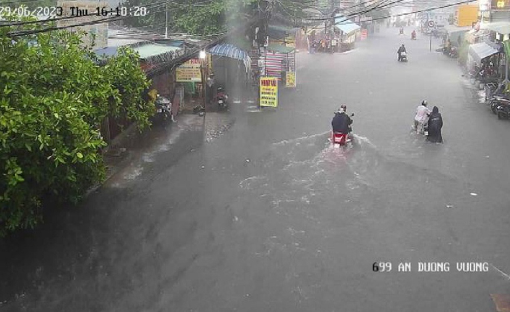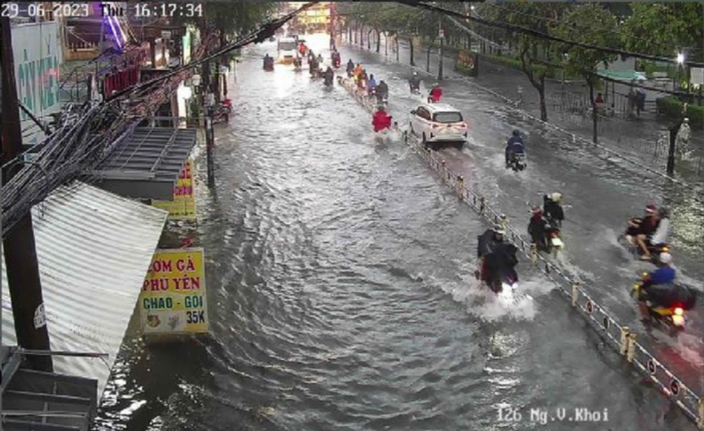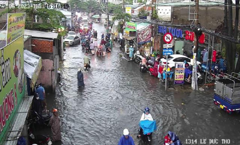 Qua quan sát trên ứng dụng cảnh báo ngập nước UDI Maps của Công ty thoát nước đô thị TP HCM, các tuyến đường như Lê Văn Thọ, Nguyễn Văn Khối, Phạm Văn Chiêu, Phan Huy Ích (quận Gò Vấp), An Dương Vương (quận Bình Tân), Hiệp Bình (TP Thủ Đức) ngập sâu trong nước.
