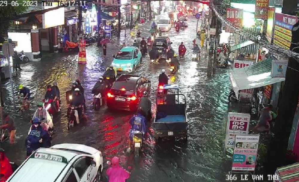 30/06/2023 01:14TP HCM mưa mù trời, nhiều nơi xe bơi trong nước