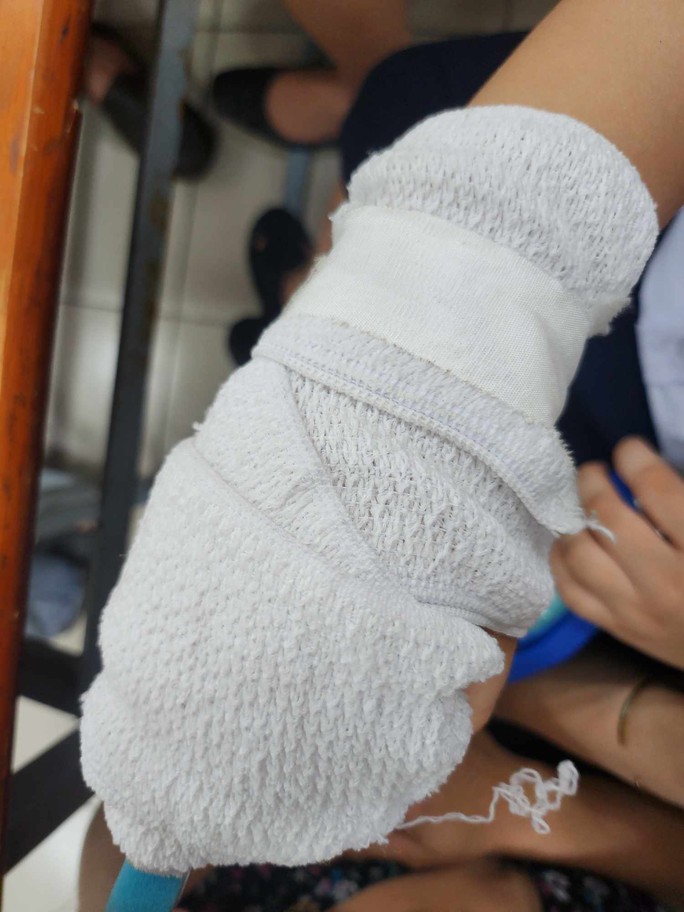 Cụ thể sự việc như sau: Chiều 4-10, sau khi đi học về đến nhà, em K nói bị đau tay. Khi phụ huynh cầm tay và quan sát thấy bàn tay bên phải của con có hiện tượng sưng. Bé than đau nhức rất nhiều. Sau khi cha mẹ gặng hỏi, bé mới nói nguyên nhân tay bị đau và sưng sau khi bị cô giáo chủ nhiệm N.T.S đánh bằng cây gõ nhạc cụ vào mu bàn tay lúc sáng 4-10 tại lớp học.