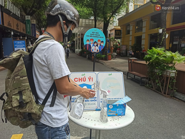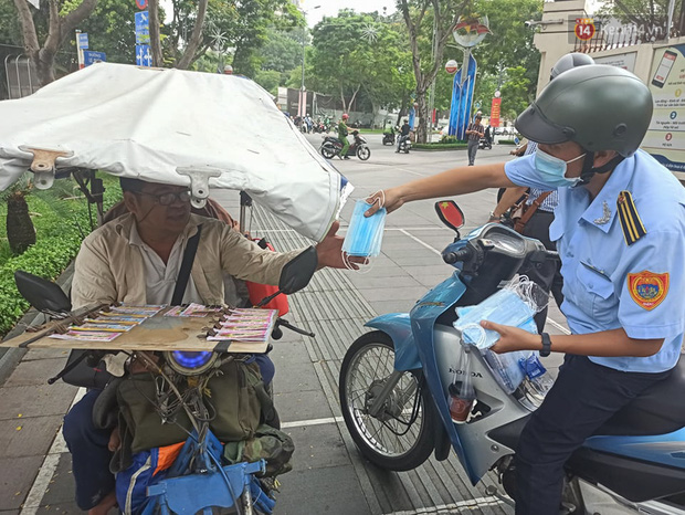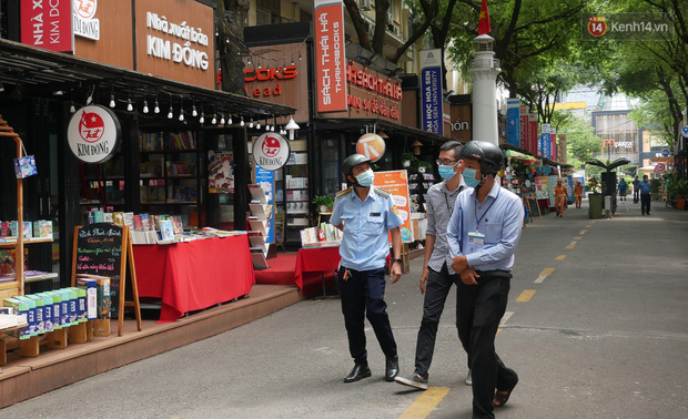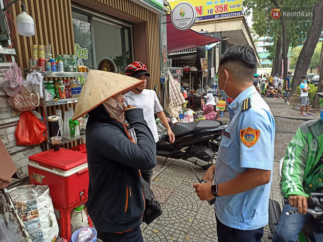 Tại các điểm công cộng ở quận 1 như phố đi bộ Nguyễn Huệ, đường sách, Bưu điện, công viên,... được lực lượng chức năng kiểm tra gắt gao, liên tục nhắc nhở mọi người đeo khẩu trang đúng cách.