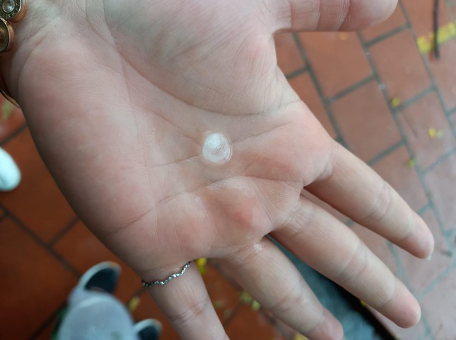 Chị Nguyễn Thị Hân (ngụ quận Tân Phú) cho biết, lúc 13h chị nghe tiếng động trên mái tôn, mở cửa ra phát hiện mưa đá. “Việc xuất hiện mưa đá rất hiếm gặp, viên đá to khoảng 0,5-1mm, mưa kéo dài khoảng 30 phút thì dừng”- chị Hân chia sẻ.