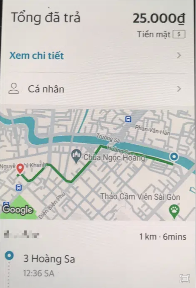 Trên app báo giá cước của cuốc xe là 25.000 đồng.