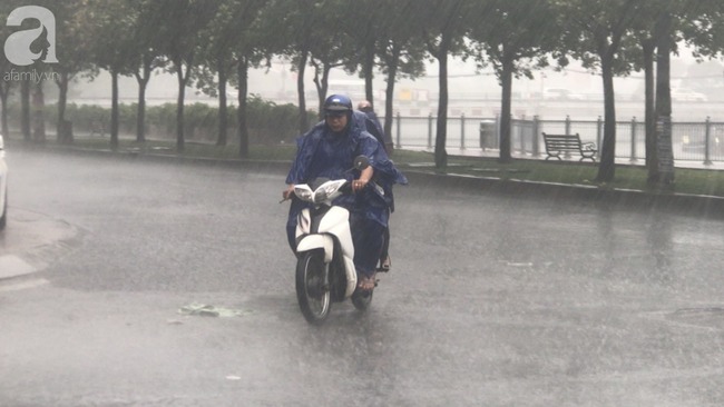 Gió giật mạnh khiến nhiều phương tiện phải giảm tốc độ di chuyển, mưa lớn khiến tầm nhìn bị hạn chế là việc rất nguy hiểm cho người tham gia giao thông.