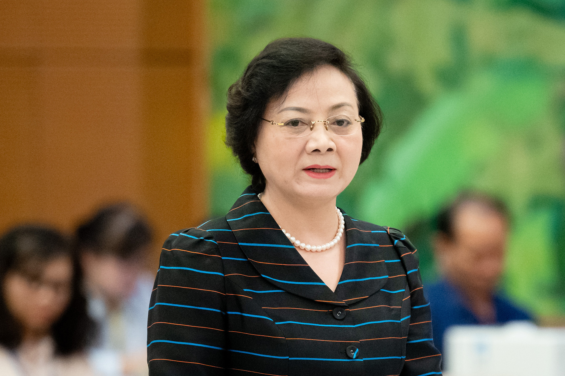 Bộ trưởng Nội vụ Phạm Thị Thanh Trà trình bày tờ trình phương án sắp xếp, thành lập đơn vị hành chính cấp huyện, cấp xã của 12 tỉnh, thành.