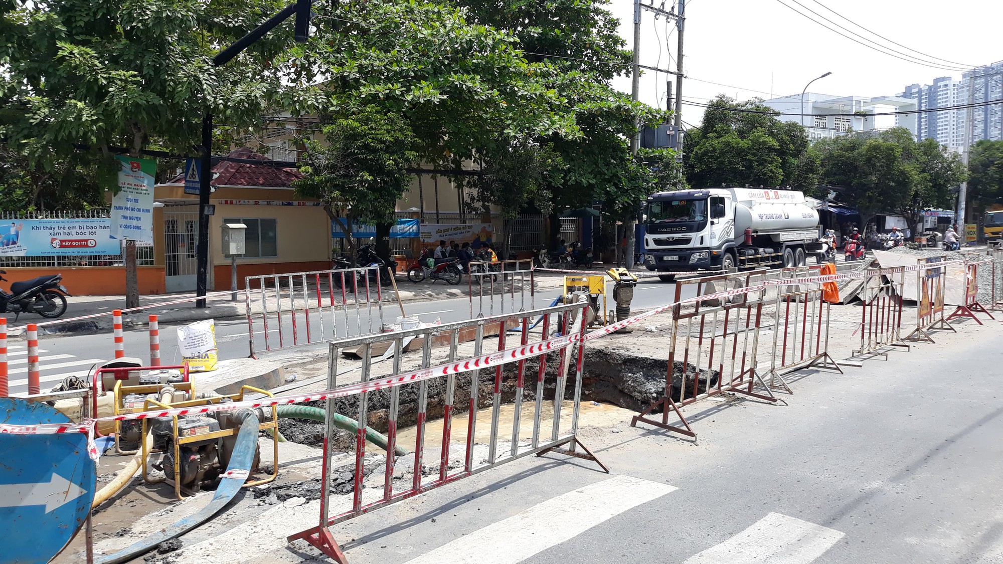 Hiện Xí nghiệp Truyền dẫn nước sạch đang trong quá trình khắc phục, cam kết trong vòng 24h tới sẽ hoàn thành. Về tái lập mặt đường nguyên trạng, dự kiến đến ngày 29/9 sẽ hoàn thành.