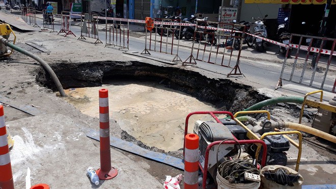 Theo Tổng công ty Cấp nước Sài Gòn, nguyên nhân ban đầu được xác định do xe trọng tải lớn đi qua làm cho đường ống nước bị vỡ, tạo thành hố tử thần gây nguy hiểm cho người đi đường.