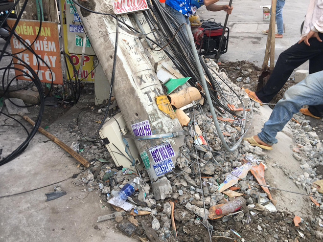 Vụ việc khiến cột điện bị gãy đôi, biển hiệu tiệm thuốc bị cháy một góc, không thương vong về người nhưng khiến cả nghìn hộ dân bị mất điện.