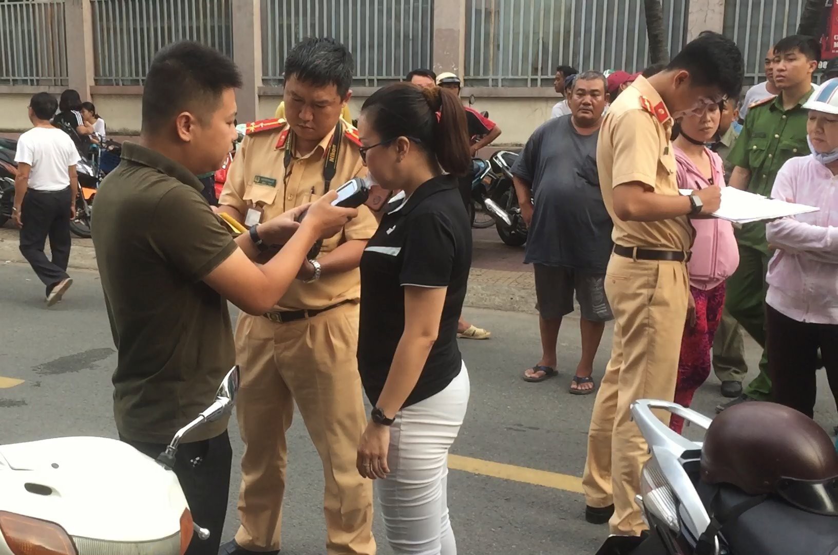 Sau đó, chính quyền địa phương và CSGT có mặt để xử lý, kiểm tra nồng độ cồn tại chỗ đối với nữ tài xế để phục vụ điều tra vụ tai nạn.