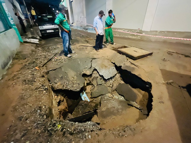 Điểm sụt lún này có đường kính dài khoảng 2 m, sâu khoảng 1,5m. Lực lượng chức năng đã tiến hành khắc phục điểm sụt lún này.