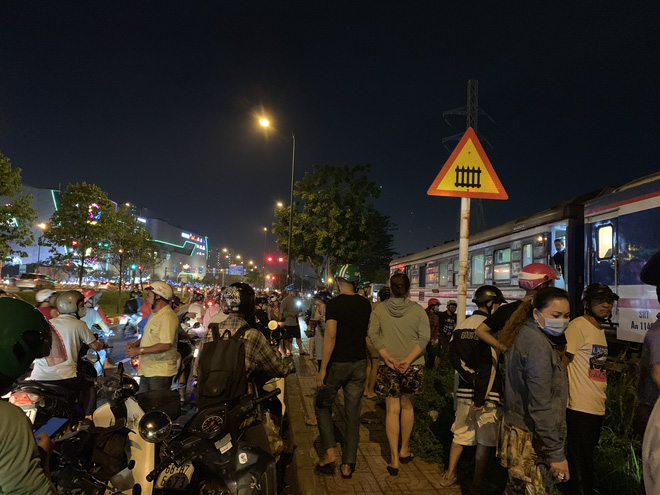 Lúc này, đoàn tàu lửa tuyến Bắc Nam chạy qua thì người đàn ông lao ra đứng giữa đường ray. Lái tàu không xử lý kịp nên tông trúng kéo lê hàng chục mét khiến người này tử vong. Vụ việc khiến hàng trăm người dân theo dõi nên giao thông qua đại lộ Phạm Văn Đồng ùn ứ kéo dài.