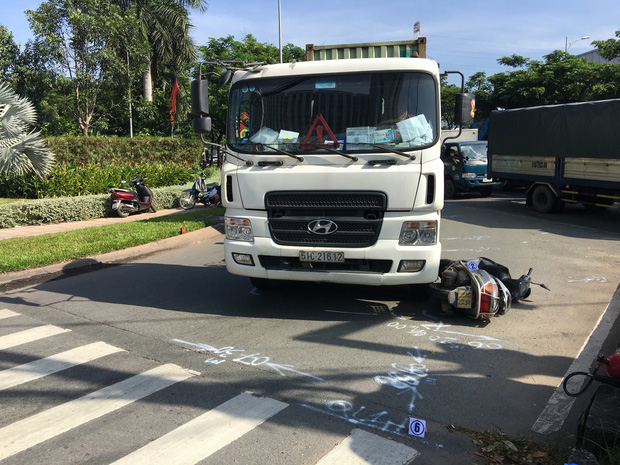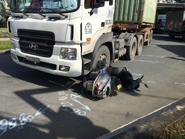 Va chạm khiến người phụ nữ bị xe container cuốn vào gầm và kéo lê về phía trước một đoạn khiến nạn nhân tử vong tại chỗ.