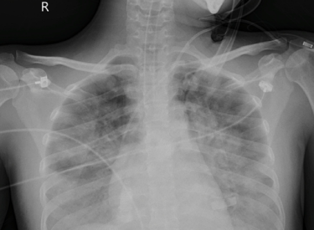 Tại đây, bệnh nhân được hồi sức chuyên sâu. Qua thăm khám, chẩn đoán hình ảnh, các bác sĩ phát hiện người bệnh bị tổn thương phổi lan tỏa hai bên chiếm gần 70% thể tích cả hai phổi. Người bệnh đã được đặt hệ thống oxy hóa qua màng ngoài cơ thể (VV-ECMO).