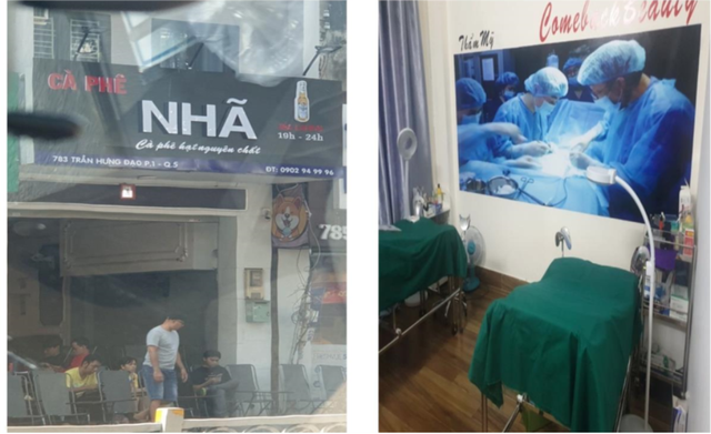 Cơ sở thẩm mỹ không có biển hiệu đặt ở trước căn nhà theo quy định mà biển hiệu "Comeback Beauty" chỉ đặt ở tầng 1 (tầng trệt là quán cà phê) nơi có phòng phẫu thuật.