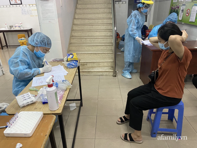 Trong đợt xét nghiệm hộ gia đình nhân viên sân bay, người này cùng gia đình ra khai báo y tế và được lấy mẫu xét nghiệm tầm soát.