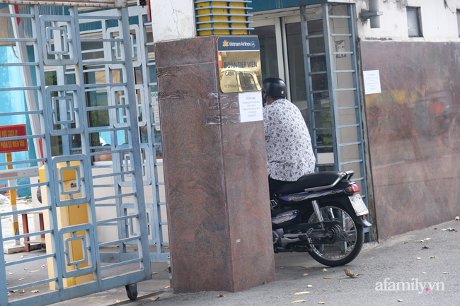 Bên ngoài cổng khu cách ly có dán thông báo dừng tiếp nhận đồ tiếp tế bên ngoài. Bảo vệ cũng túc trực canh gác chặt chẽ.