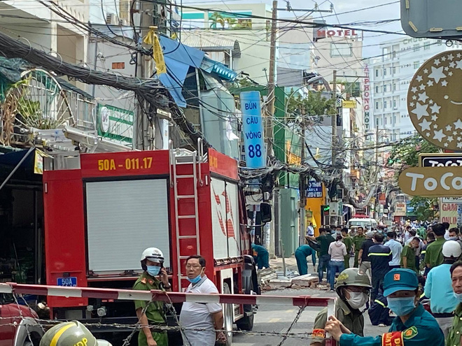 Đến 11h30' ngày 22/12, lực lượng chức năng vẫn đang phong toả hiện trường vụ nổ tại căn nhà bán bún đậu trên ở quận Phú Nhuận, TP.HCM.