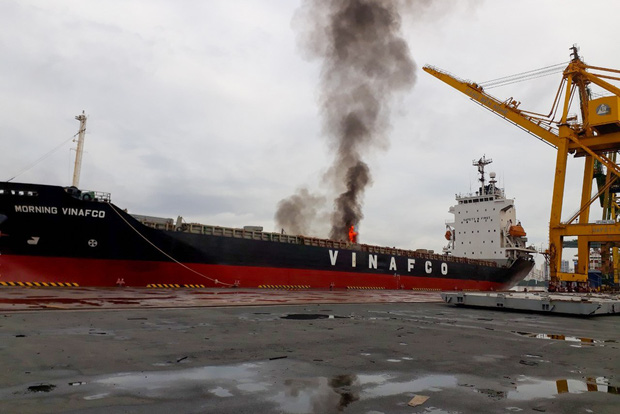 Thời điểm này tàu MORNING VINAFCO đang neo đậu tại cảng thì bất ngờ xảy ra sự cố cháy tại hầm 2 của tàu. Nhiều người phát hiện đã đến dập lửa nhưng bất thành, đám cháy bùng lên dữ dội, khói bốc lên cao nhiều mét.